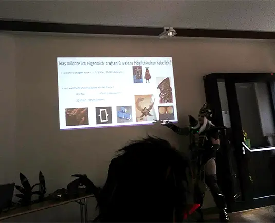 Im Foyer konntet ihr euch die Craftingausstellung ansehen, mit Cosplayer*innen und Fotograf*innen reden und euch an den verschiedenen Fotopoints ablichten lassen.