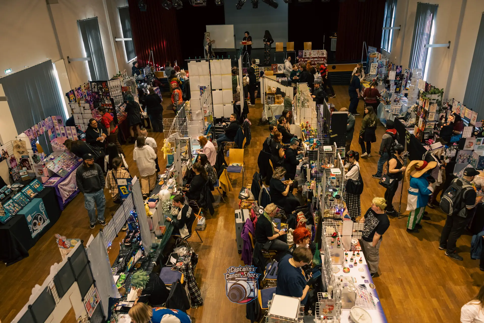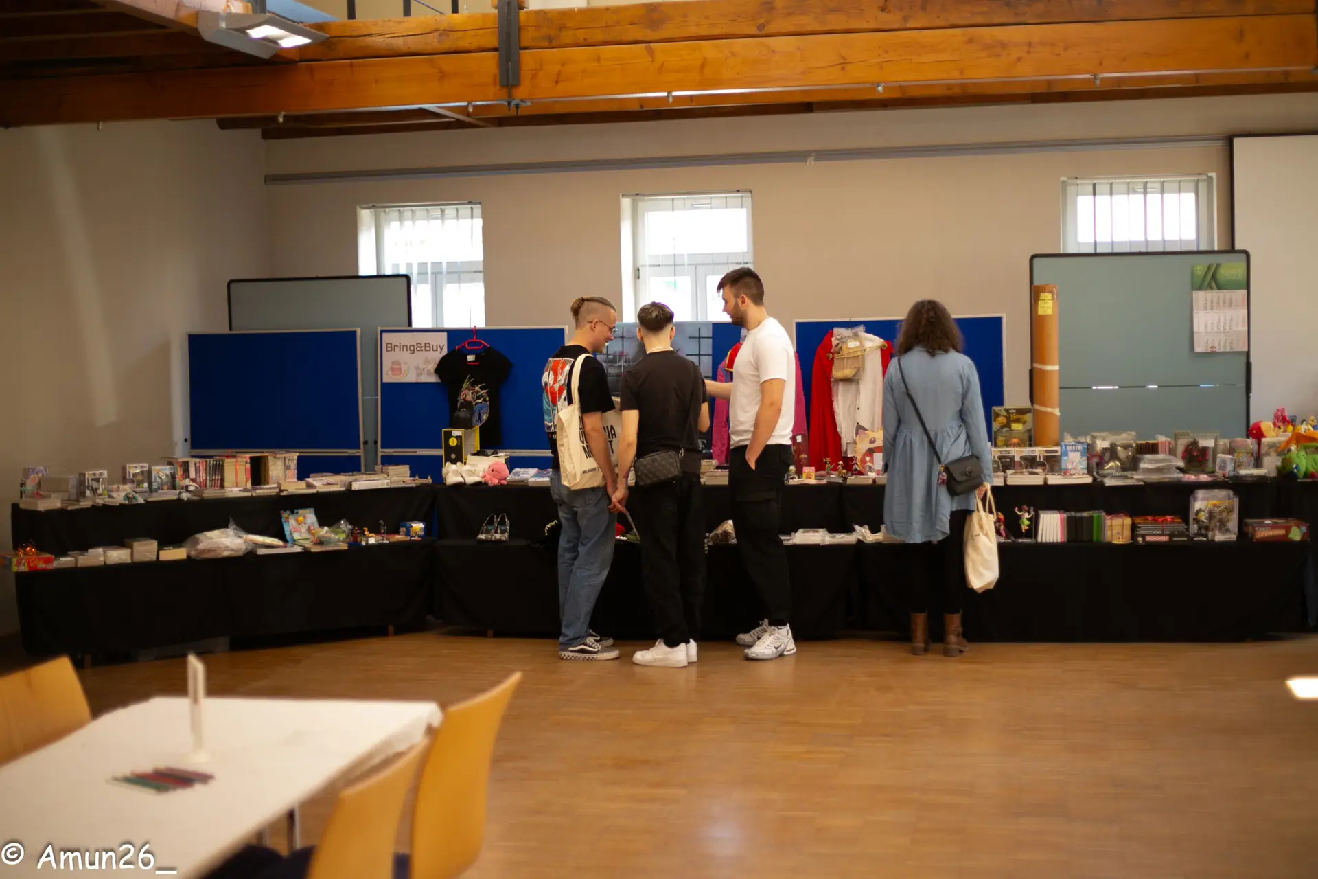 In der Haupthalle konntet ihr das ganze Wochenende über an den Verkaufsständen von ca. 50 verschiedenen Künstler:innen shoppen oder euch Einträge in euer Con-Hon zeichnen lassen.